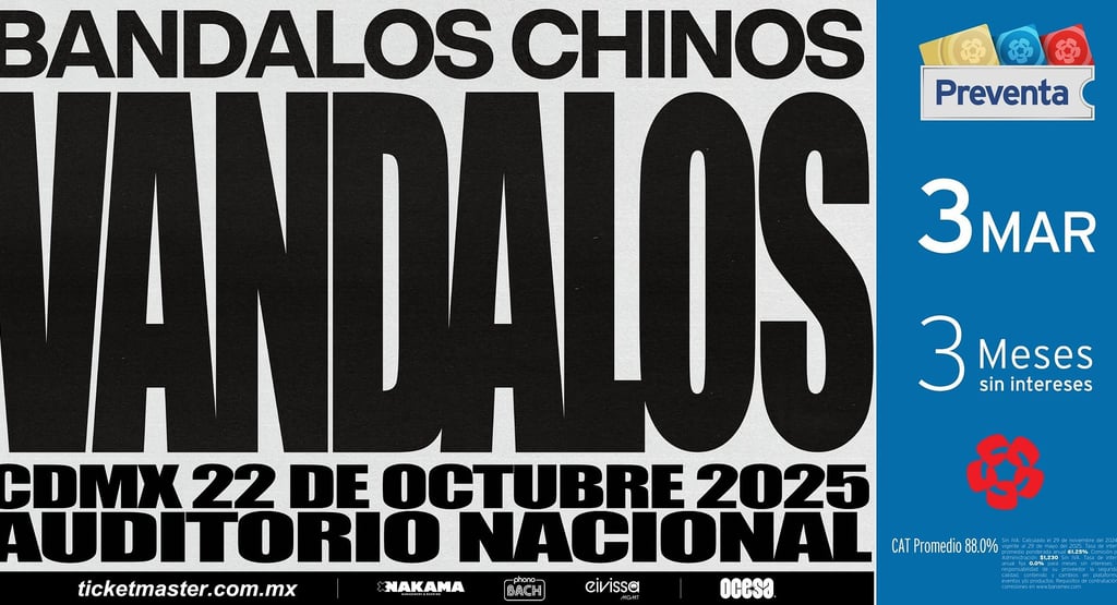 Bandalos Chinos llega al Auditorio Nacional el 22 de octubre. La banda argentina presentará su nuevo álbum Vándalos y hará vibrar la CDMX con un show que promete ser histórico para el pop alternativo.