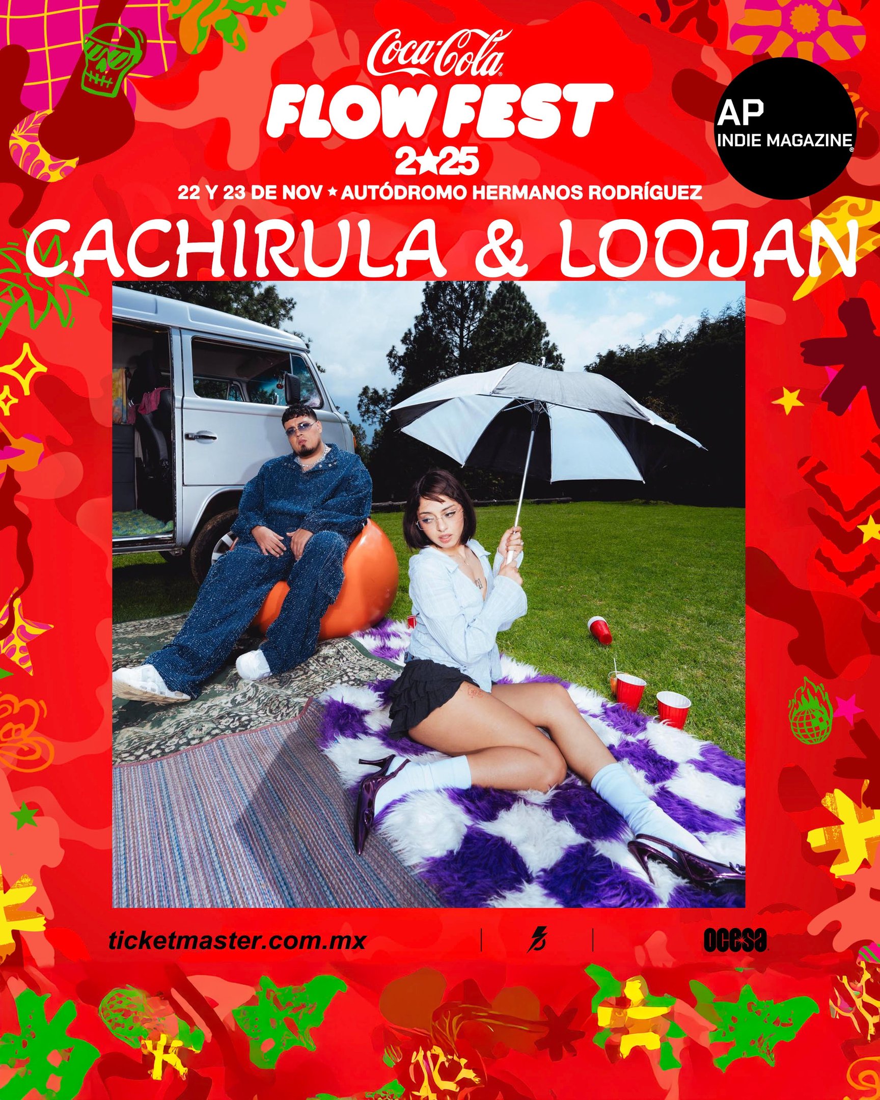 Cachirula & Loojan llegan al Flow Fest con su estética irreverente y explosiva. Con beats intensos y temas como “Mala Fama” y “Bellaka Mode”, prometen uno de los perreos más salvajes del festival.