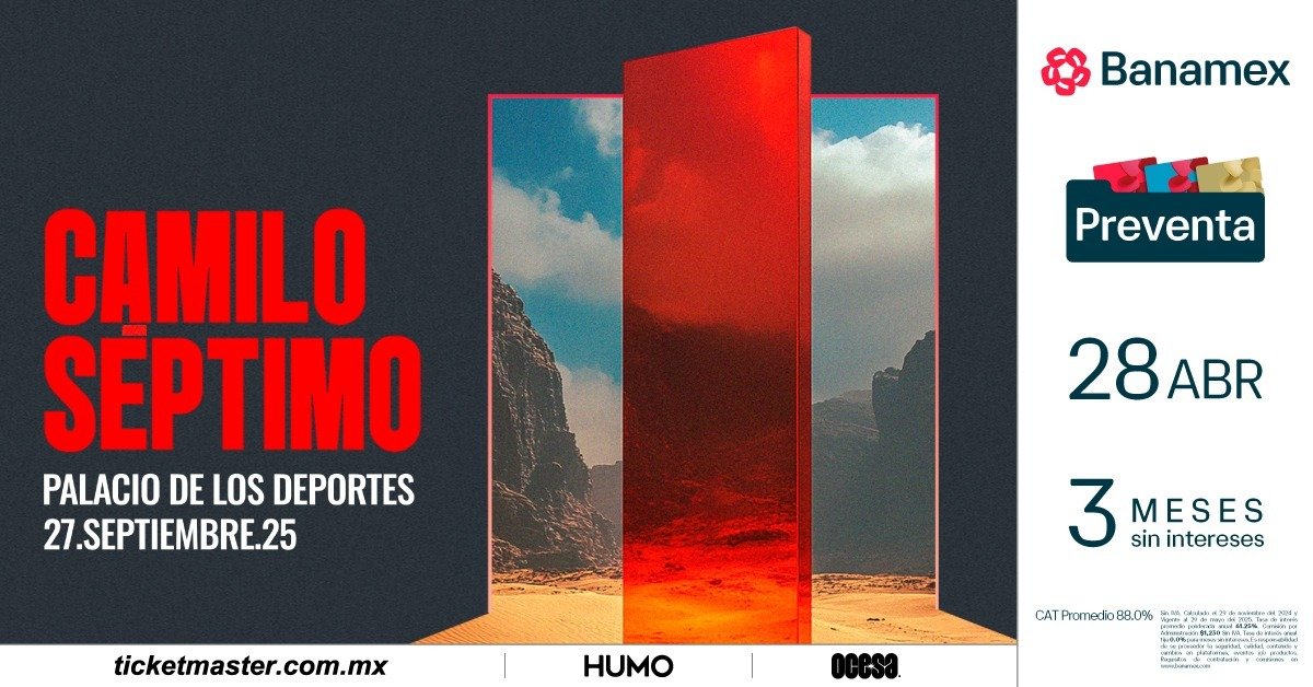 Formada por Manuel Mendoza (voz y bajo), Jonathan Meléndez (teclados) y Erik Vázquez (guitarra), con la colaboración en vivo de músicos como César Cardiel, Camilo Séptimo ha forjado un sonido que fusiona la frescura del indie con la intensidad del synthpop. Desde su debut en 2014, han conquistado festivales y nominaciones en premios como los IMAs y MTV Miaw, ganándose un lugar en 95 playlists de Amazon Music y el corazón de fans en México y más allá. Su nombre, un guiño curioso al legendario Camilo Sesto, refleja su habilidad para tomar inspiraciones inesperadas y convertirlas en algo propio.El concierto del 27 de septiembre no será solo un show, sino un ritual donde la banda desplegará su alquimia sonora ante miles de fans. Con boletos en preventa Banamex a partir del 28 de abril a las 11:00 a.m. y venta general el 29 de abril vía Ticketmaster o taquillas, la expectativa crece.