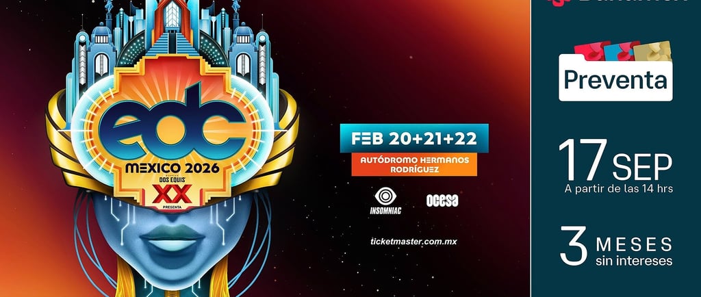 La preventa Banamex para EDC México 2026 comenzará el 17 de septiembre a las 2:00 PM, mientras que la venta general estará disponible a partir del 18 de septiembre, tanto en Ticketmaster como en taquillas del Palacio de los Deportes.