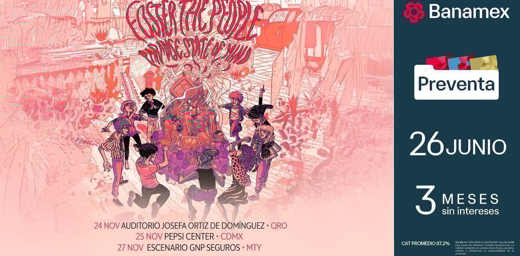 Foster The People anuncia la etapa latinoamericana de su Paradise State of Mind Tour con fechas en Costa Rica, El Salvador y México. La gira celebra su aclamado álbum homónimo y llega tras exitosas presentaciones en EE.UU., antes de continuar por Europa y Lollapalooza Chicago.