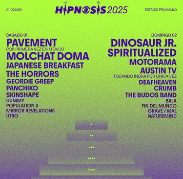 Ciudad de México, 10 de julio de 2025. — El universo sonoro del Festival Hipnosis vuelve a abrir sus portales. Este jueves se reveló el cartel oficial para su edición 2025, que se celebrará los próximos 1 y 2 de noviembre en el Estadio Fray Nano, con un lineup que reafirma su posición como el encuentro más importante de psicodelia, rock alternativo y exploración musical en México.