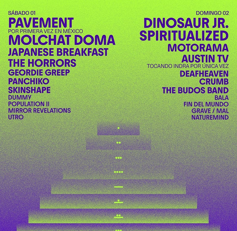 La primera jornada estará encabezada por Pavement, banda icónica del indie rock noventero, que visitará México por primera vez. Junto a ellos, los bielorrusos Molchat Doma prometen inundar el escenario con su característico sonido post-punk y atmósfera gótica.