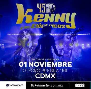 Kenny y Los Eléctricos celebran 45 años de historia con un concierto monumental en el Foro Puebla 186 este 1º de noviembre. Orquesta, invitados y el poder de la madre del rock mexicano.