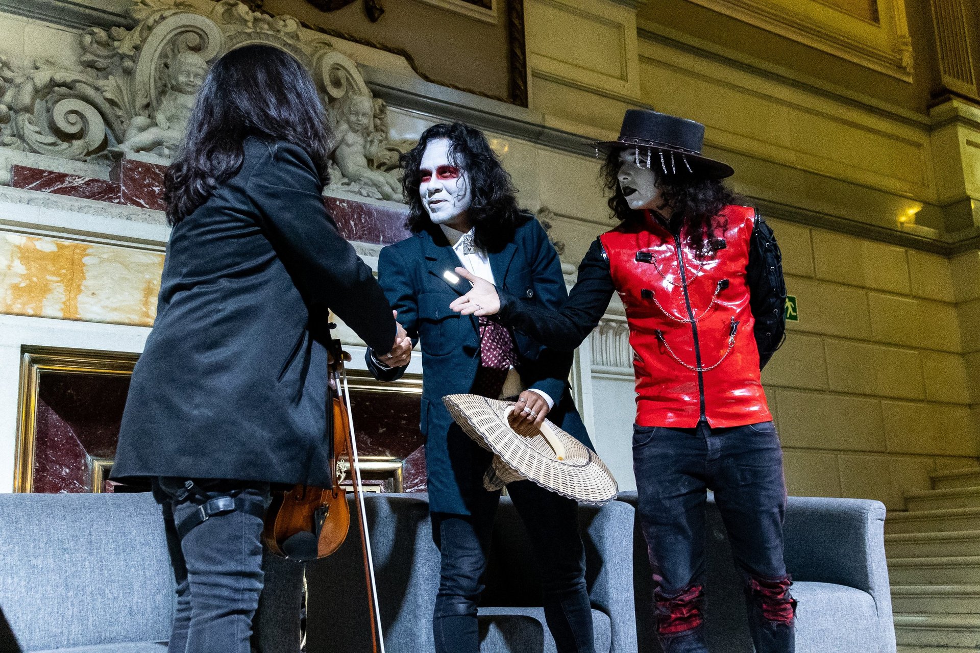 Durante la charla, la banda explicó que su propuesta darkwave no se limita a un género: es una fusión entre beats electrónicos, violines melancólicos y elementos de la cultura mexicana que han convertido sus presentaciones en experiencias inmersivas. Además, destacaron que cada concierto es distinto, pues se interpretan todos los instrumentos en vivo y hay espacio para la improvisación y la sorpresa.