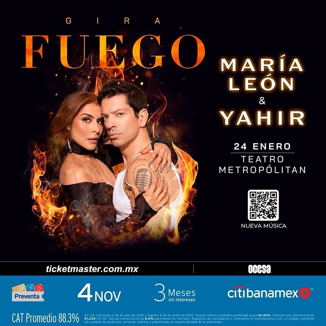 Este 24 de enero, marca tu calendario y prepárate para una noche inolvidable con María León y Yahir. Estamos seguros de que después de este concierto, estarás hablando de él durante mucho tiempo. ¡Nos vemos allí!
