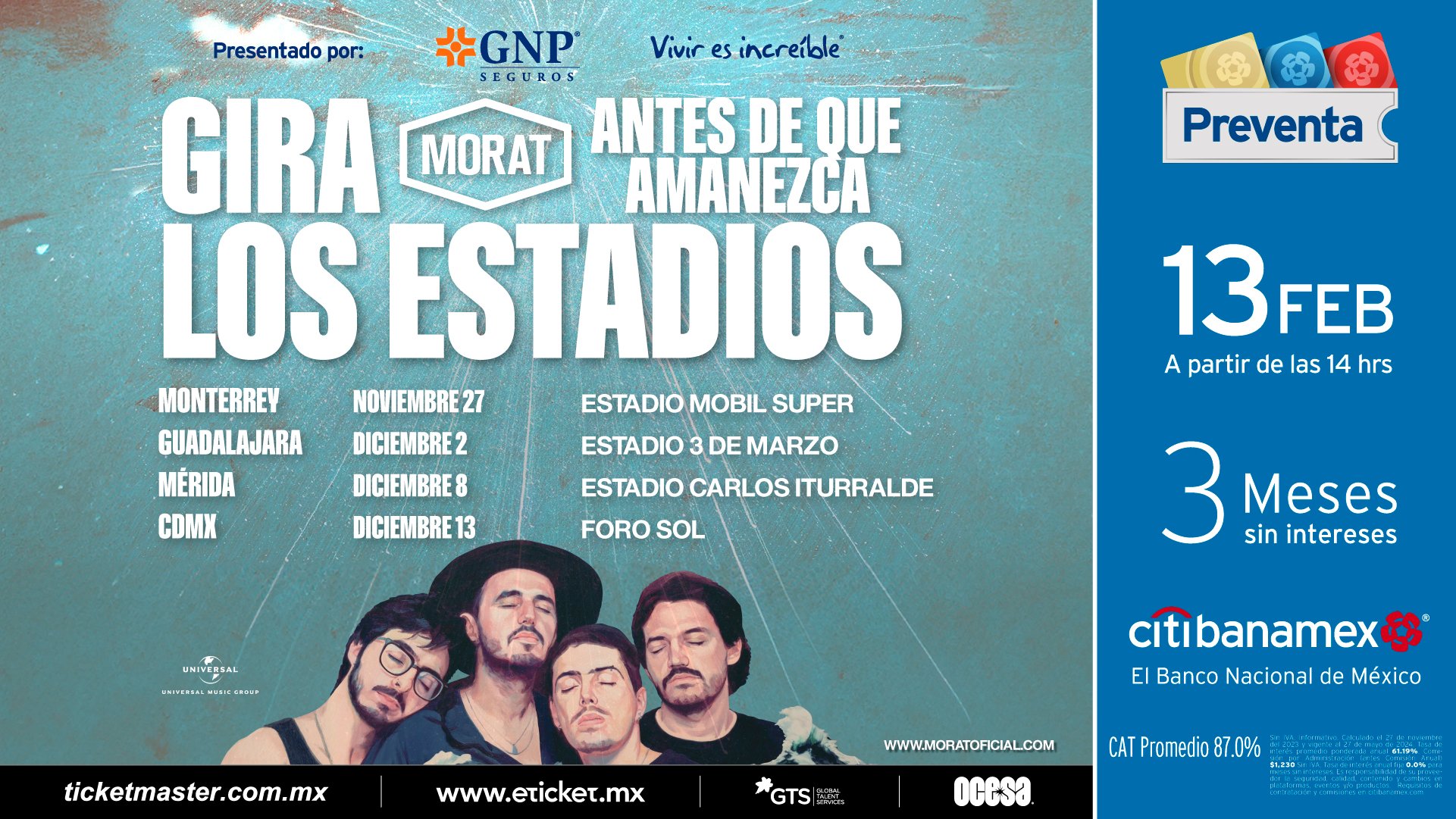 Los boletos para el concierto de Morat ya están a la venta y se recomienda a los interesados comprarlos lo antes posible, ya que se espera que se agoten rápidamente. El estadio GNP Seguros cuenta con una capacidad para miles de personas, lo que garantiza un ambiente vibrante y festivo. Los fanáticos podrán disfrutar de una experiencia inolvidable con otras personas que, como ellos, comparten una pasión por la música de Morat.