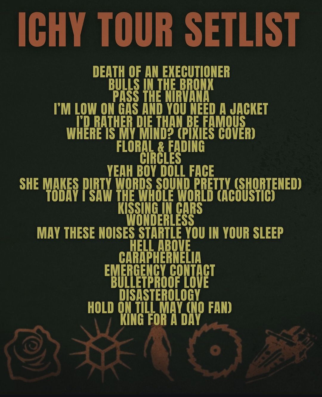 El concierto inició con toda la energía de “Death of an Executioner”, marcando el tono de una noche intensa y catártica. De ahí, la banda avanzó a través de himnos como “Bulls in the Bronx”, “Pass the Nirvana”, “Caraphernelia” y “Hell Above”, confirmando que este tour no viene a guardar nada.