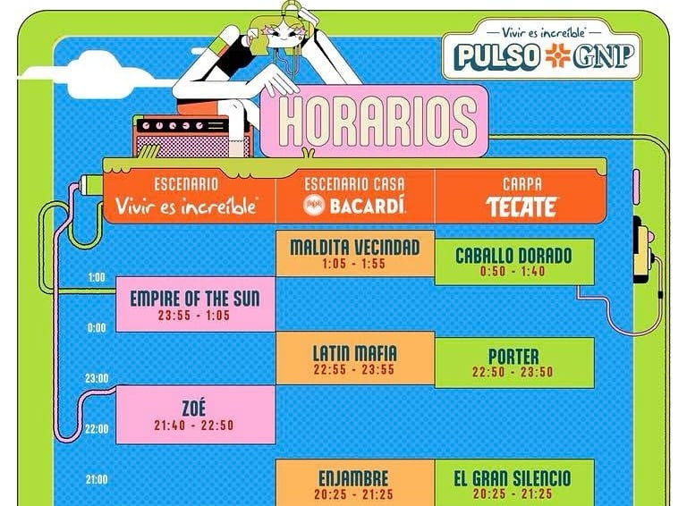 Pulso GNP 2025 revela sus horarios oficiales: Empire of the Sun cerrará la noche, Zoé, The Chainsmokers y Billy Idol encabezarán el cartel. Tres escenarios, más de 12 horas de música y una experiencia única en Querétaro.