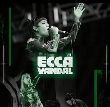 Nacida en Sudáfrica y criada en Australia, Ecca Vandal encontró su identidad musical entre riffs corrosivos, sintetizadores afilados y una voz capaz de ir del canto melódico al grito punk sin previo aviso. Su álbum debut homónimo (2017) la posicionó como una de las revelaciones globales del rock alternativo, y desde entonces ha ido expandiendo su marca con colaboraciones intensas y una estética visual imposible de ignorar.