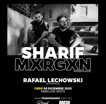 Sharif y Lechowski ultiman detalles de su concierto del 6 de diciembre en el Pabellón Oeste. El show incluirá músicos en vivo y una puesta en escena teatral con spoken word. El público mexicano espera una noche de sensibilidad, poesía y emociones profundas.