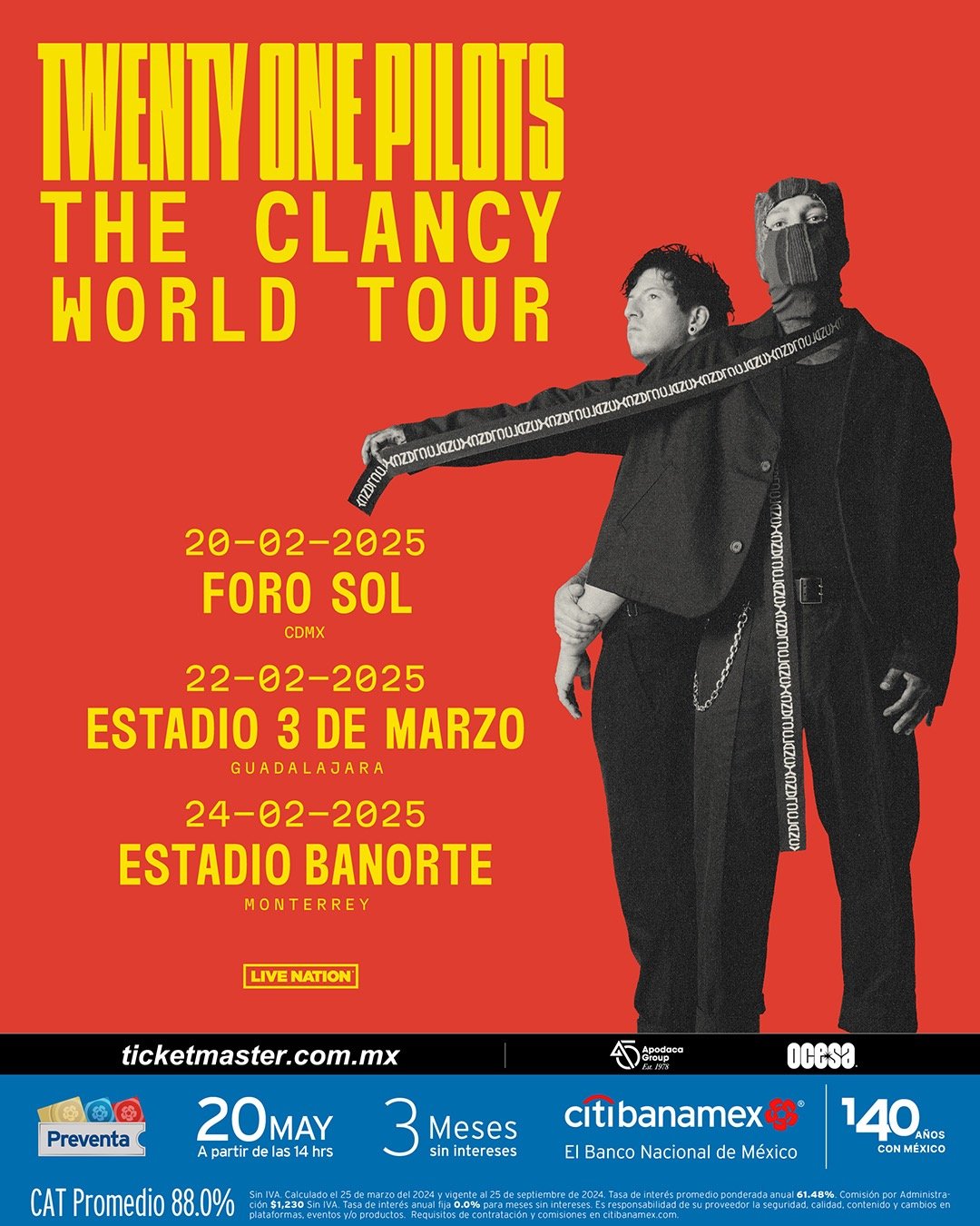 El 20 de febrero de 2025 será una fecha memorable para todos los fanáticos de la música en la Ciudad de México. En el estadio GNP Seguros, la famosa banda Twenty One Pilots llegará con su esperada gira "The Clancy World Tour". Este concierto promete ser una gran experiencia que todos deben vivir, llenando el ambiente de energía, emoción y las melodías que han cautivado a millones alrededor del mundo.
